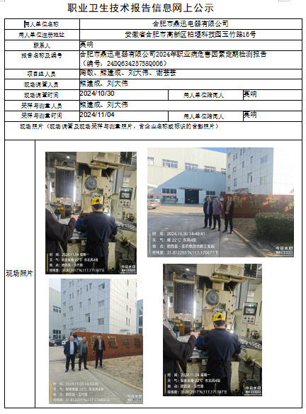 合肥市鼎迅電器有限公司2024年職業病危害因素定期檢測報告